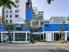 看到如此熟悉的紋路,就應該知道這又是一家集裝箱改造而成的三層建筑了。然而事實是建筑的外表僅以集裝箱鐵皮作為裝飾,實則為鋼骨結構。外觀以藍白為主,形似一[查看詳情]