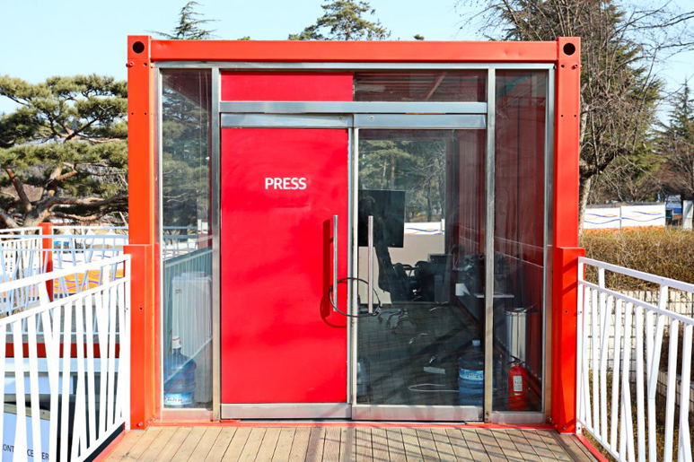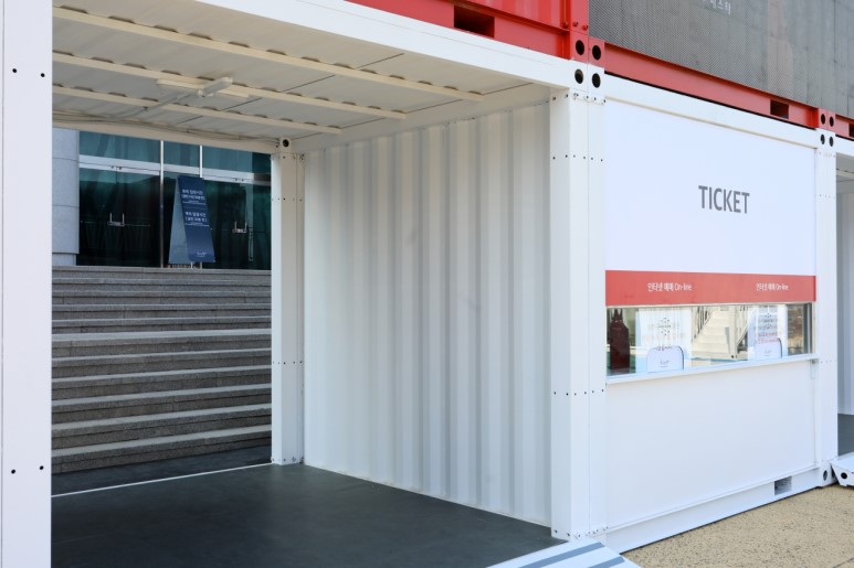 江陵原州大學(xué)是韓國(guó)的國(guó)立綜合大學(xué),坐落于東海岸的有力地勢(shì),對(duì)觀(guān)光,環(huán)境,海洋等領(lǐng)域進(jìn)行大力投資。得益于優(yōu)美的環(huán)境,一些展覽和演出會(huì)選址在大學(xué)里進(jìn)行。為了方便臨時(shí)售票和進(jìn)出場(chǎng),一些集裝箱建筑被佇立在了這里。