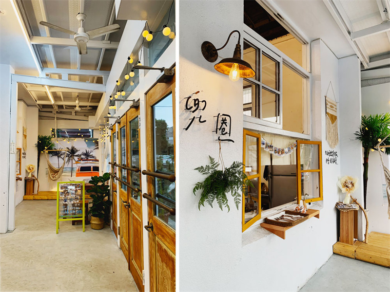 位于中國臺灣嘉義市東區忠孝路346巷18號,由老舊房屋改造,加入韓國元素的鐵桶、高腳椅等,并用集裝箱模塊打造了一座全新的餐飲建筑,以白色為主軸,成為網紅打卡新熱點。老房子被改造成寬敞的公共就餐區,而旁邊新建的集裝箱建筑則進駐了三家韓式美食餐廳,包括:耍廢炸雞、尚贊燒烤居和兜圈咖啡廳。該集裝箱建筑共有三層樓,最頂上是一個露臺,并利用鋼架構創建了戶外活動甲板。